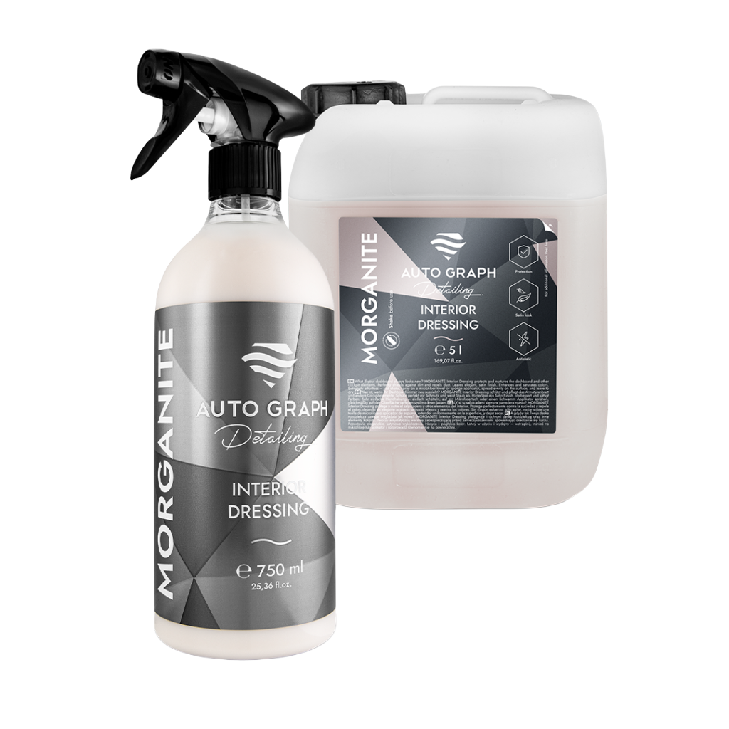 Voulez-vous que votre tableau de bord ait toujours l’air neuf ? MORGANITE Interior Dressing entretient et protège votre tableau de bord et autres pièces en plastique. Il crée une couche antistatique qui protège de la saleté et ralentit ainsi l'accumulation de poussière. Protège les plastiques des influences extérieures et du soleil, ralentissant ainsi la décoloration. Laisse un élégant fini satiné. Assombrit, sature et approfondit la couleur. Après contact avec l'eau, ne laisse aucune trace. Le produit est prêt à l'emploi. A un agréable parfum .