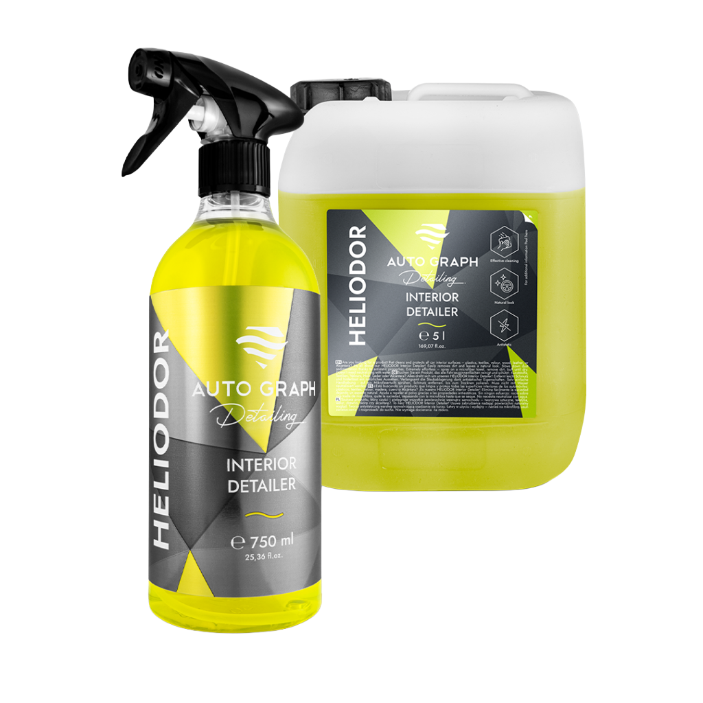 Un seul produit peut-il non seulement nettoyer, mais aussi entretenir toutes les surfaces à l'intérieur de la voiture : plastiques, textiles, velours, bois ou alcantara, ainsi que les écrans LCD ? Découvrez HELIODOR Interior Detailer. Il est extrêmement polyvalent, efficace, mais sans danger pour toutes les surfaces à l'intérieur de la voiture. Il est idéal pour ce qu'on appelle le désossage, c'est-à-dire le nettoyage manuel des tissus d'ameublement et du ciel de toit. Il ne nécessite pas de rinçage humide. Élimine la saleté, donnant à la surface un aspect naturel et laissant un fini satiné. Crée une couche antistatique, ralentissant l'accumulation de poussière. Produit prêt à l'emploi.