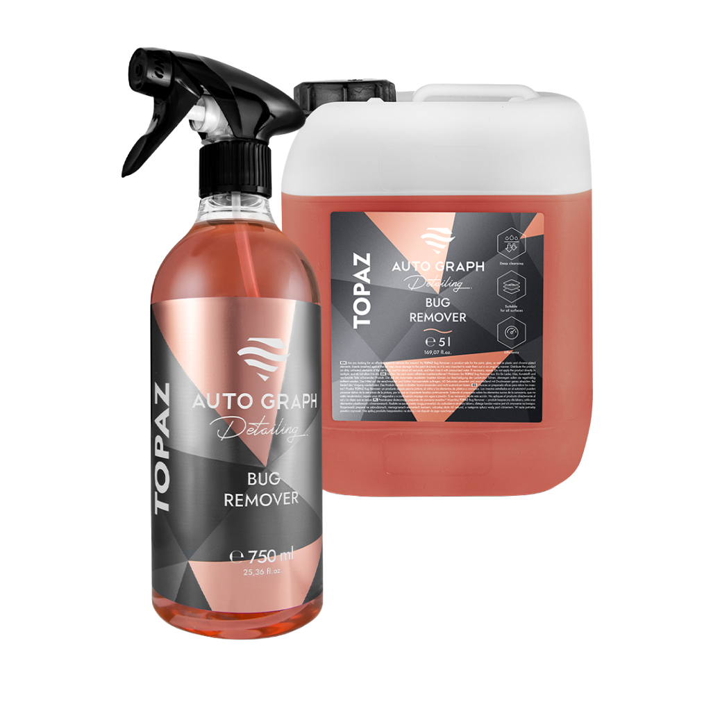 Êtes-vous à la recherche d’un éliminateur d’insectes efficace ? Essayez TOPAZ Bug Remover - un produit sans danger pour la laque, le verre, les pièces en plastique et chromées. Les insectes laissés sur la voiture peuvent endommager la structure de la peinture, il est donc très important de les laver régulièrement. Le produit contient une formule spéciale qui décompose les protéines des carapaces des insectes, les éliminant ainsi de la surface rapidement et efficacement. Produit prêt à l'emploi.
